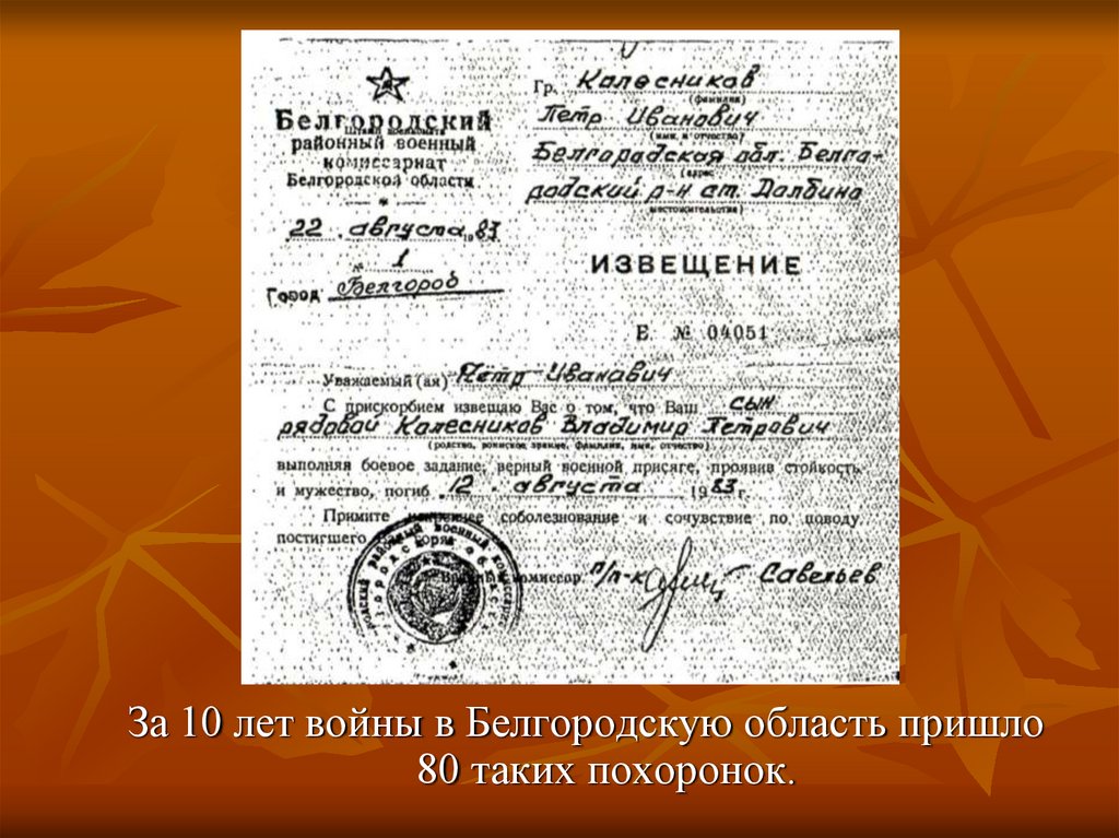 За 10 лет войны в Белгородскую область пришло80 таких похоронок.