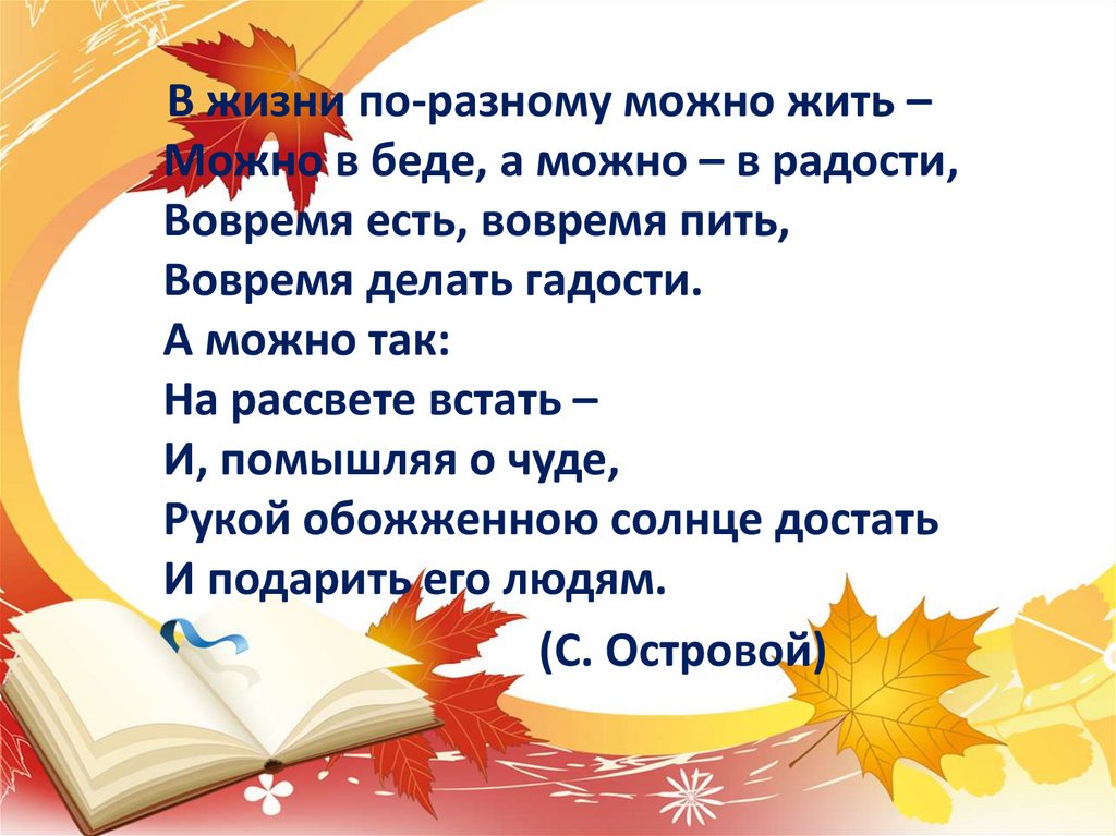 В жизни по-разному можно жить –Можно в беде, а можно – в радости,