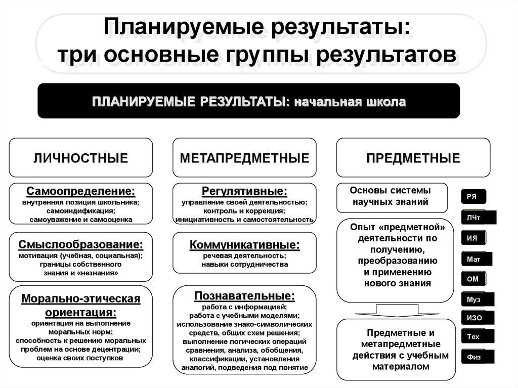 Планируемые результаты:три основные группы результатов