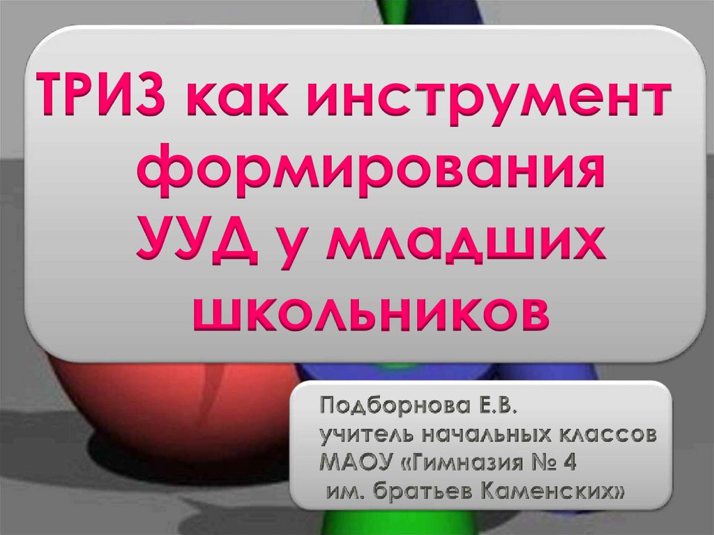 Подборнова ТРИЗ как инструмент формирования универсальных учебных действий у младших школьников