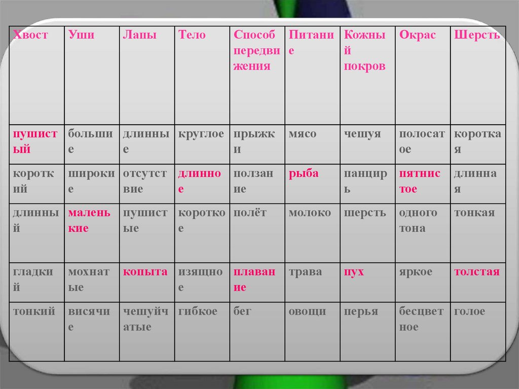 длинны малень пушист коротко полёт