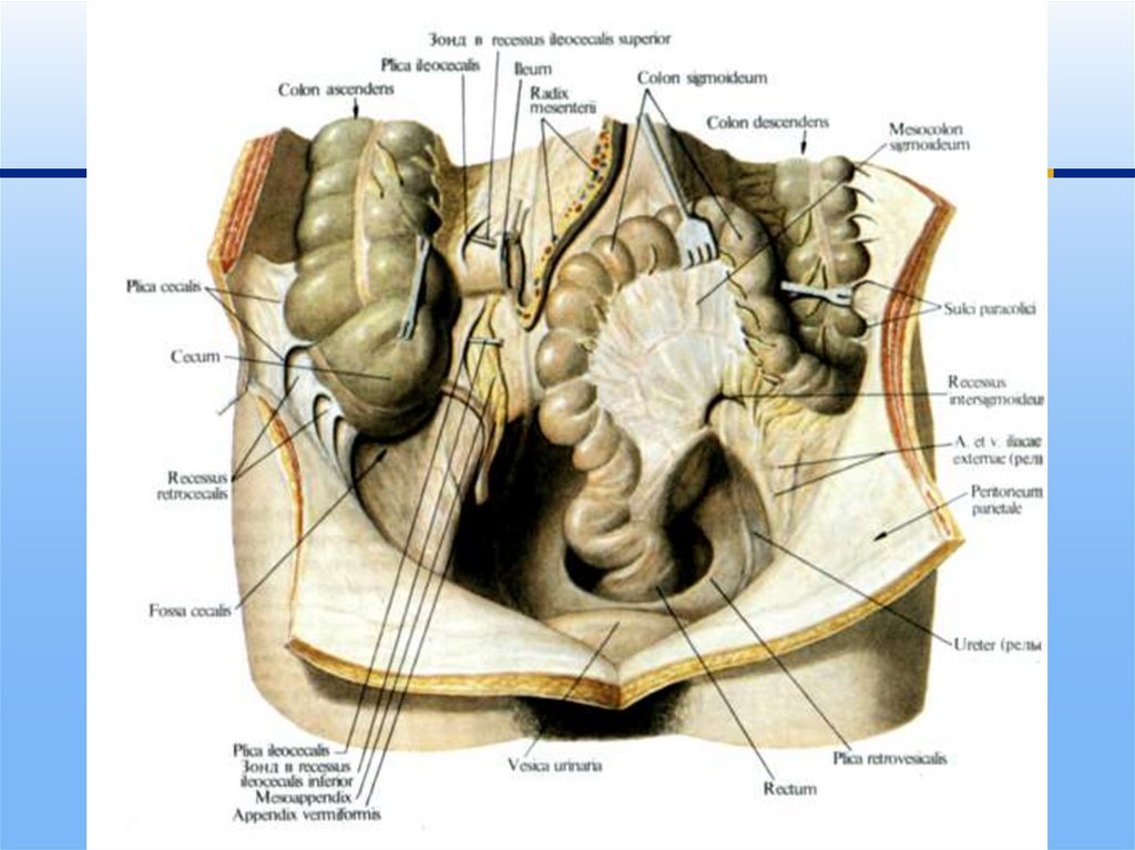 восходящее (сзади). Нисходящее – тоще подвздошное и