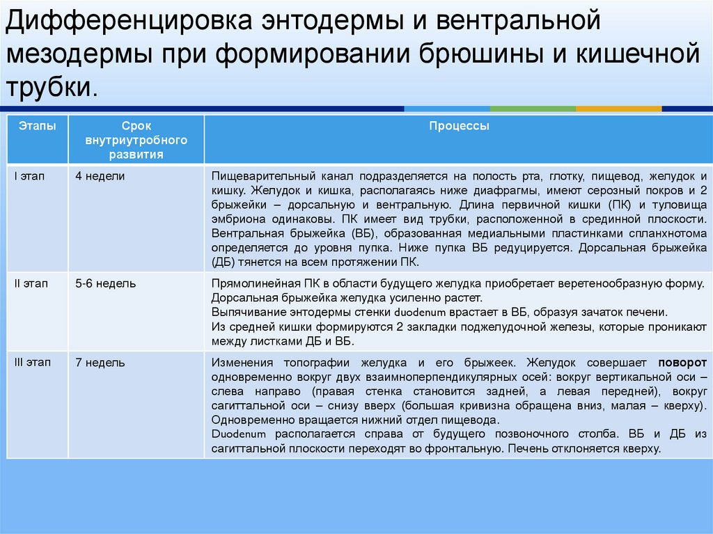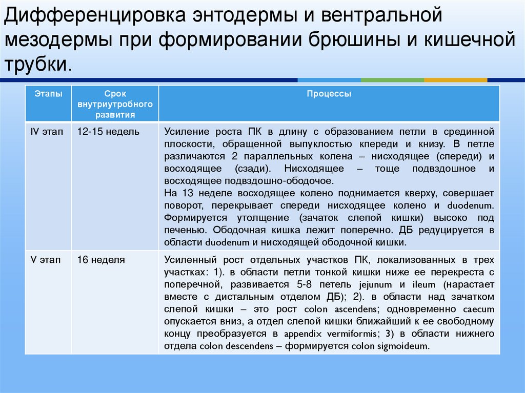 Дифференцировка энтодермы и вентральноймезодермы при формировании брюшины и кишечной