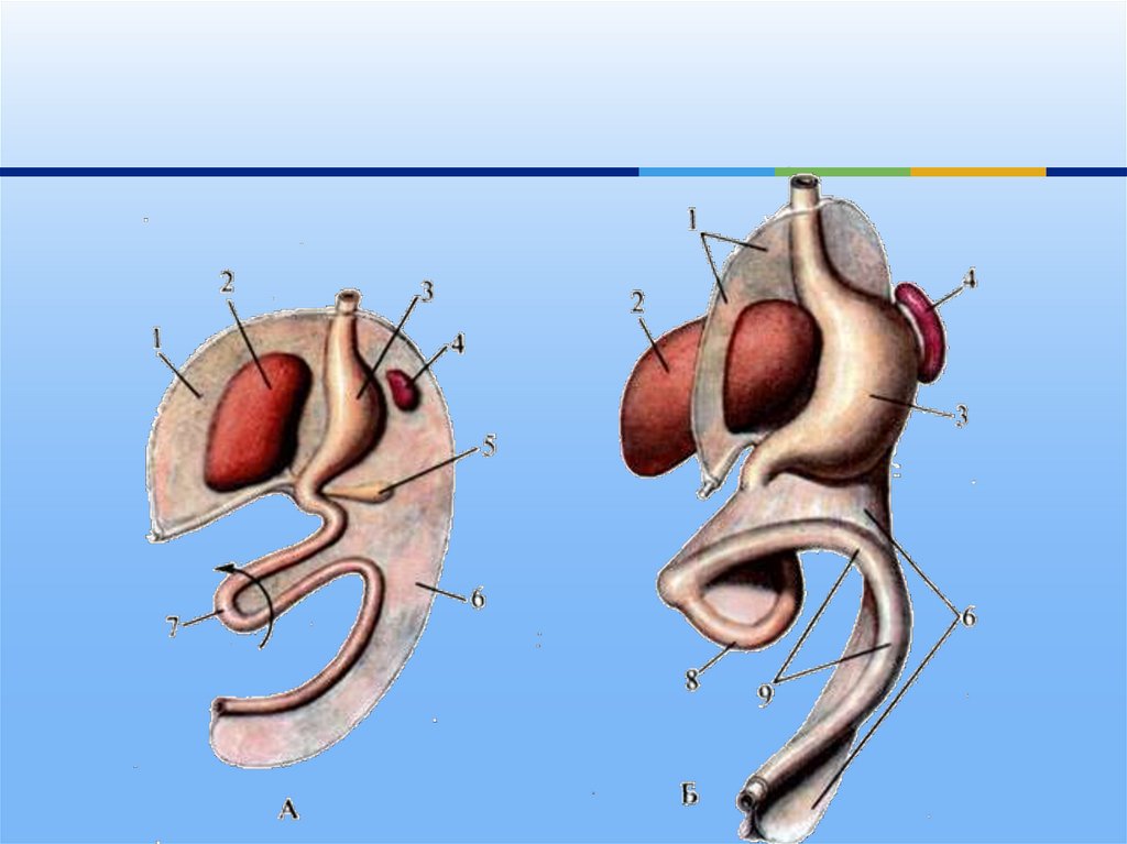 Изменения топографии желудка и его брыжеек. Желудок совершает поворот