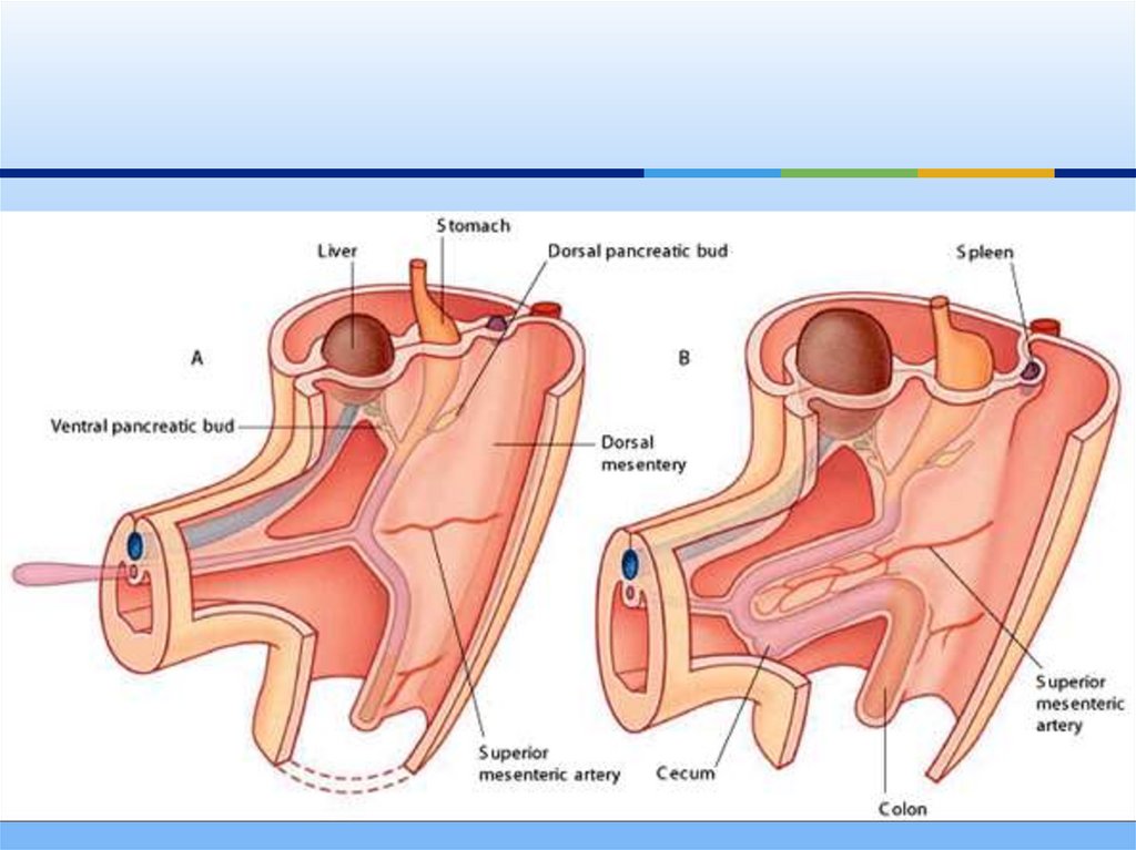 Из средней кишки формируются 2 закладки поджелудочной железы, которые проникают