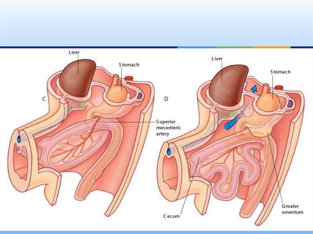 поперечной, развивается 5-8 петель jejunum и ileum (нарастает