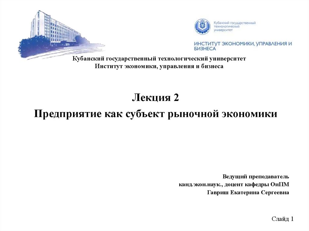 1. Кубанский государственный технологический университет Институт экономики, управления и бизнеса