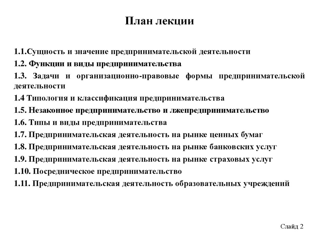 План лекции1.1.Сущность и значение предпринимательской деятельности