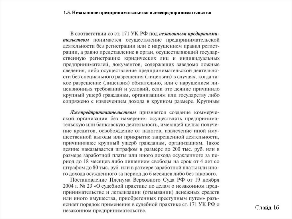 1.5. Незаконное предпринимательство и лжепредпринимательствоСлайд 16
