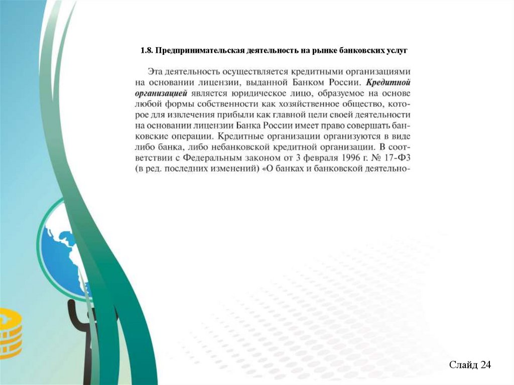 1.8. Предпринимательская деятельность на рынке банковских услугСлайд 24
