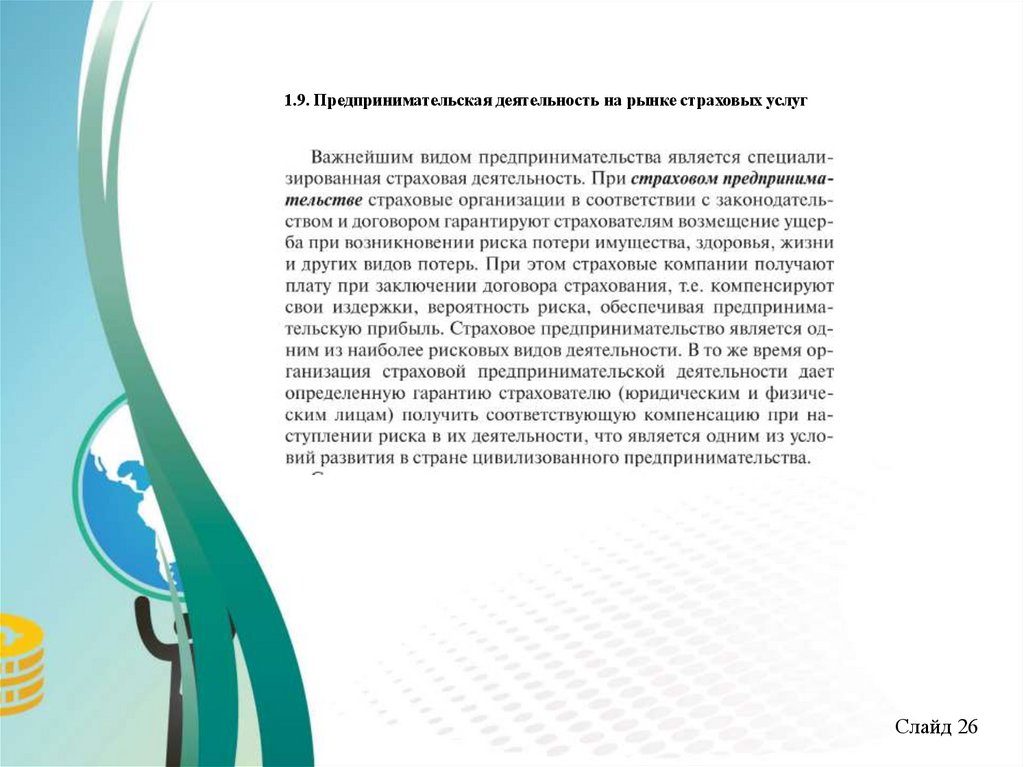 1.9. Предпринимательская деятельность на рынке страховых услугСлайд 26