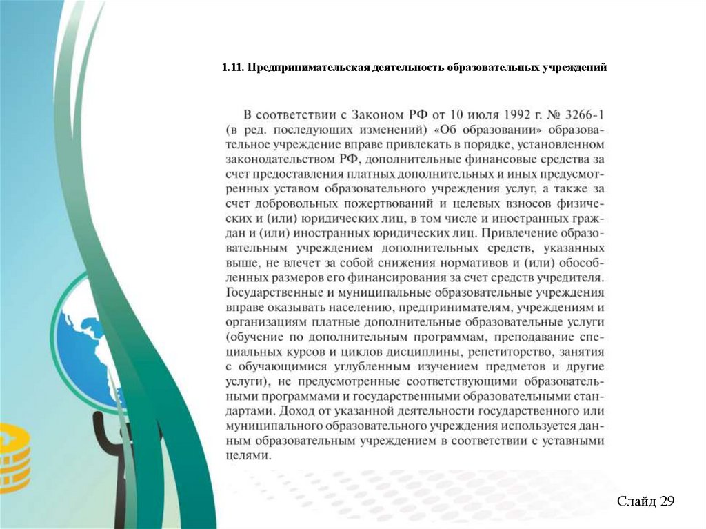 1.11. Предпринимательская деятельность образовательных учрежденийСлайд 29
