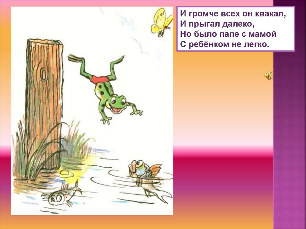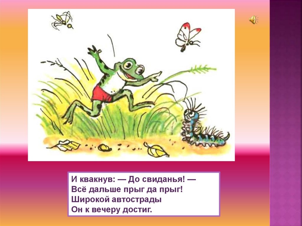 И квакнув: — До свиданья! —Всё дальше прыг да прыг!