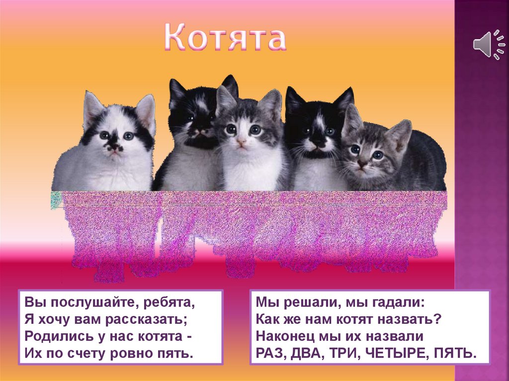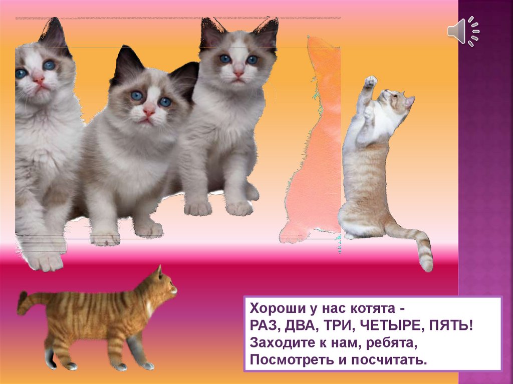Хороши у нас котята РАЗ, ДВА, ТРИ, ЧЕТЫРЕ, ПЯТЬ!Заходите к нам, ребята,