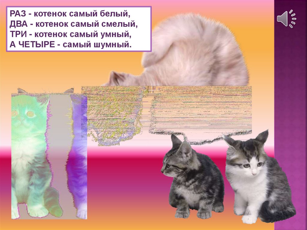 РАЗ - котенок самый белый,ДВА - котенок самый смелый,