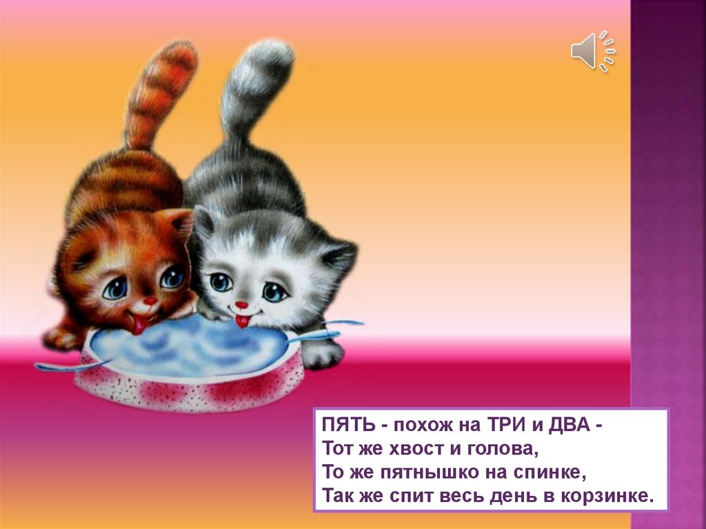 ПЯТЬ - похож на ТРИ и ДВА Тот же хвост и голова,То же пятнышко на спинке,
