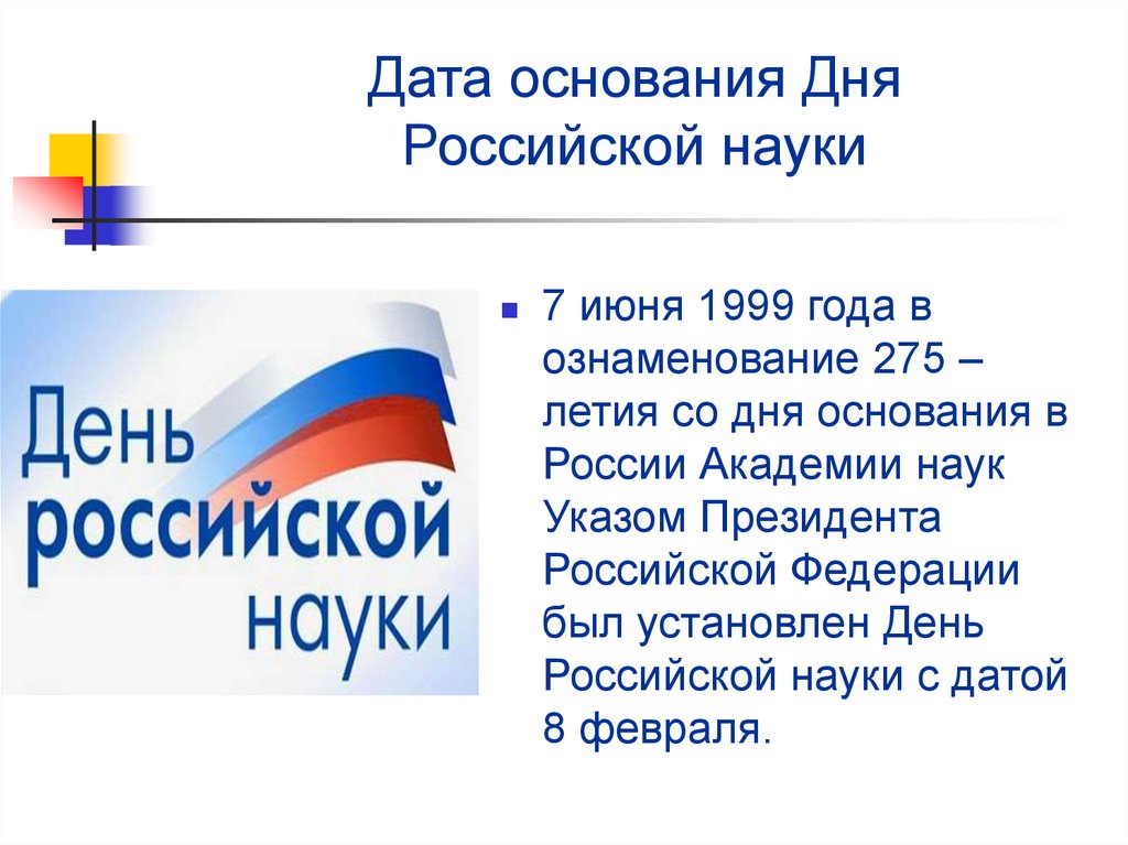 Дата основания ДняРоссийской науки