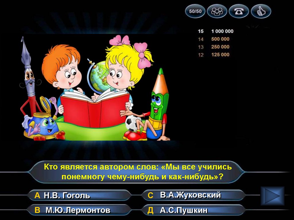 Кто является автором слов: «Мы все училисьпонемногу чему-нибудь и как-нибудь»?