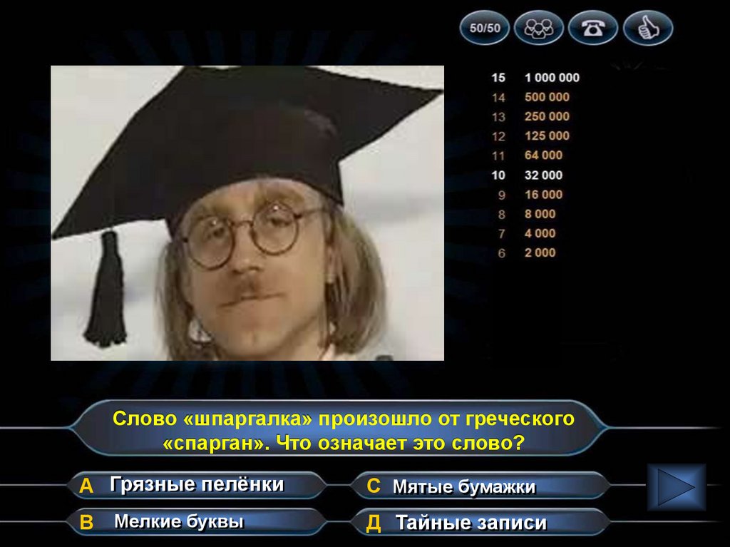 Слово «шпаргалка» произошло от греческого«спарган». Что означает это слово?