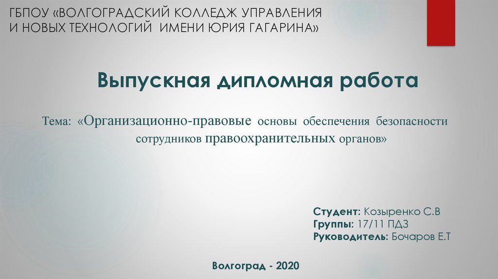 ГБПОУ «ВОЛГОГРАДСКИЙ КОЛЛЕДЖ УПРАВЛЕНИЯИ НОВЫХ ТЕХНОЛОГИЙ ИМЕНИ ЮРИЯ ГАГАРИНА»