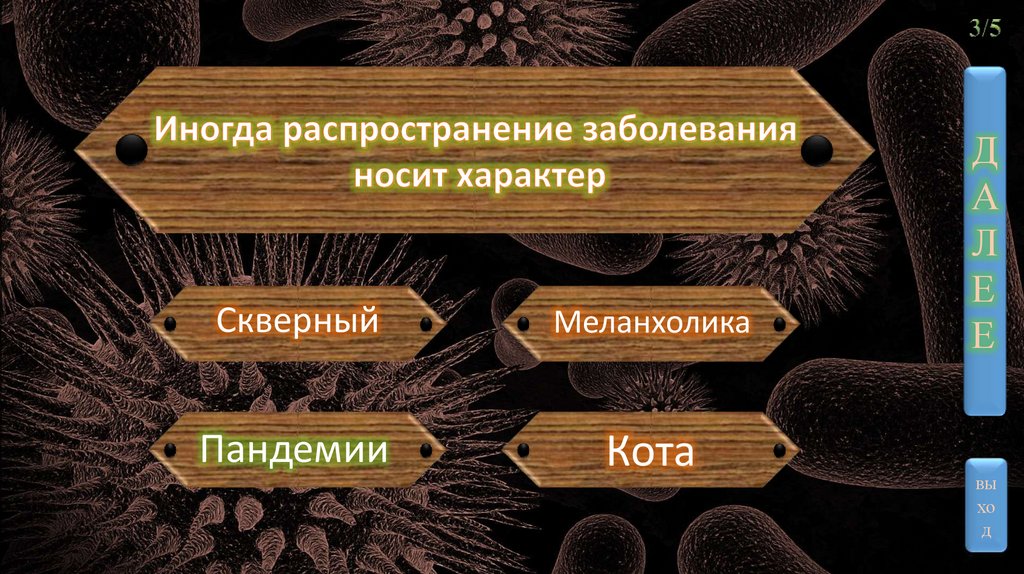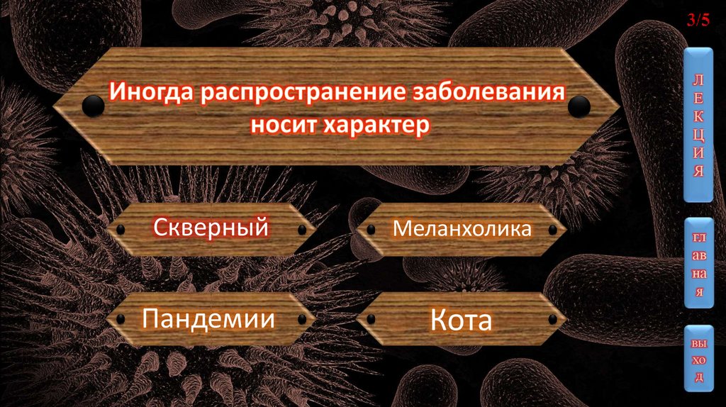 условиях (природная очаговость , эпизоотии и т.д.) так и главным