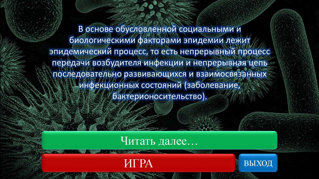 В основе обусловленной социальными ибиологическими факторами эпидемии лежит