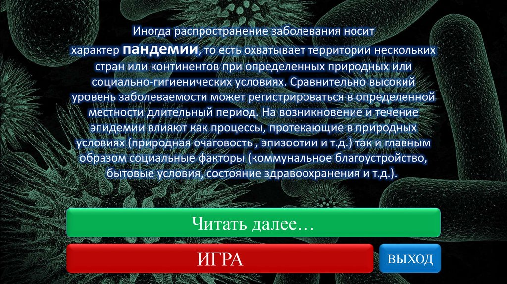 Иногда распространение заболевания носитхарактер пандемии, то есть охватывает территории нескольких