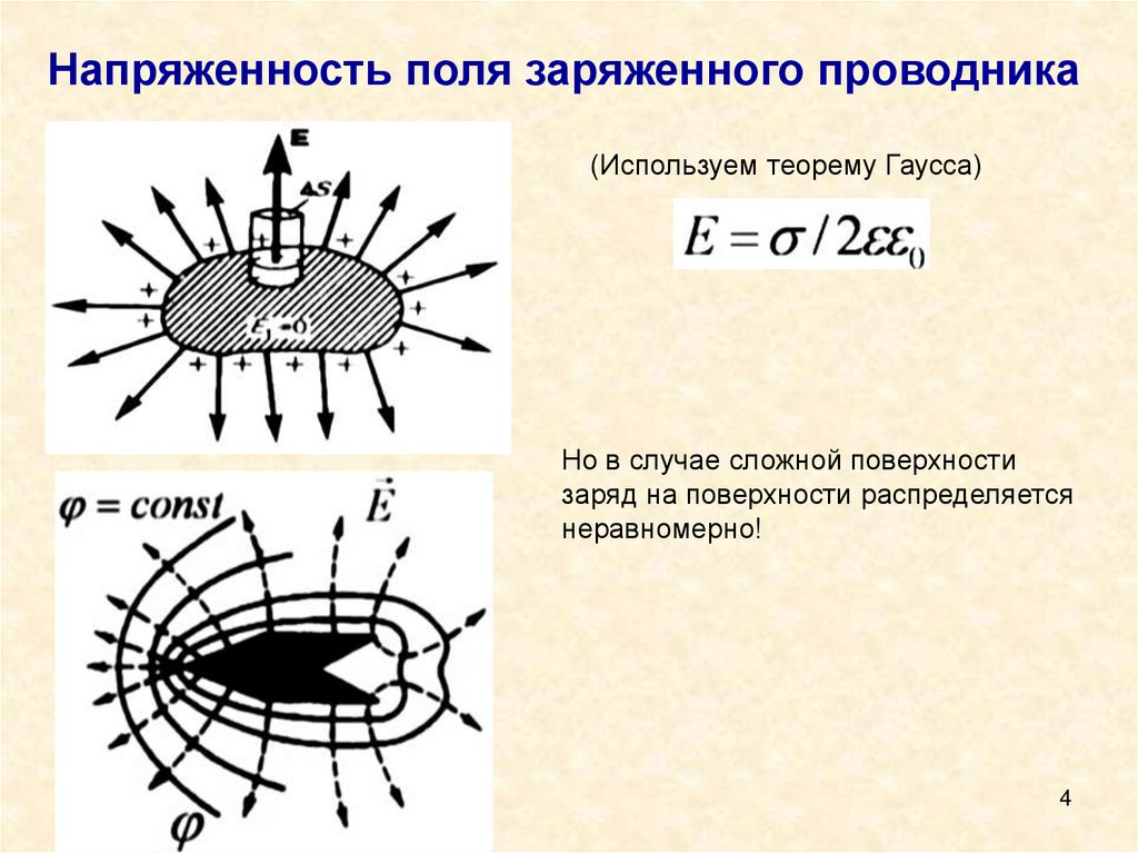 Напряженность поля заряженного проводника(Используем теорему Гаусса)