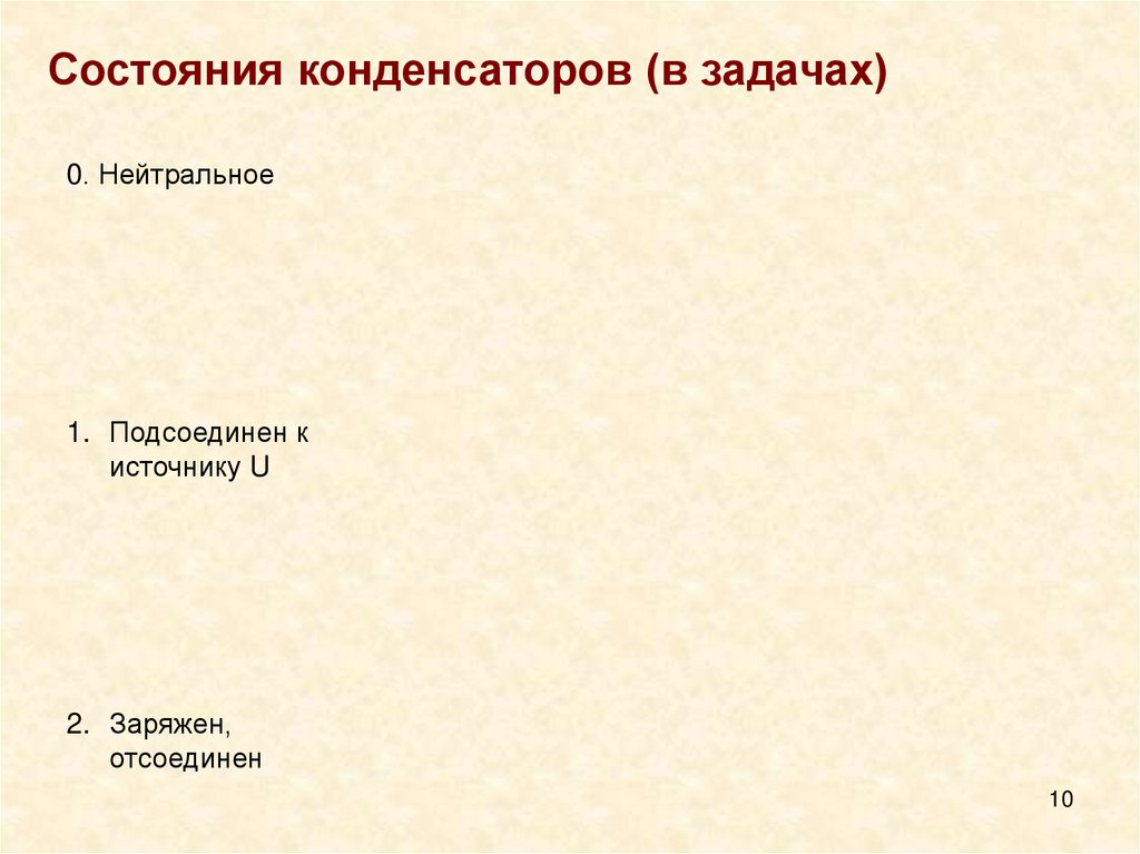 Состояния конденсаторов (в задачах)0. Нейтральное