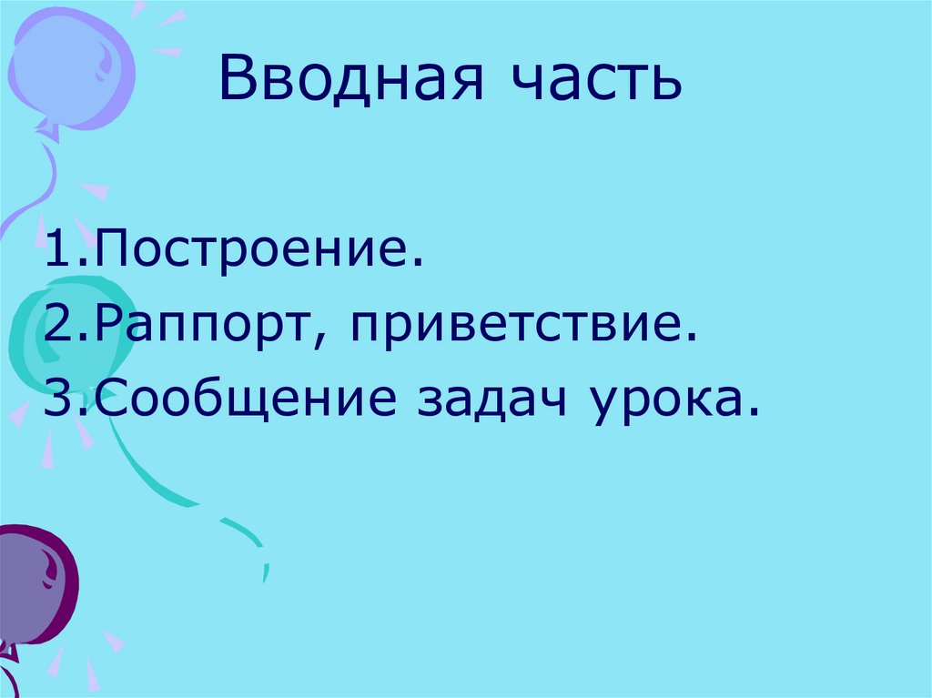 I.Вводная часть: