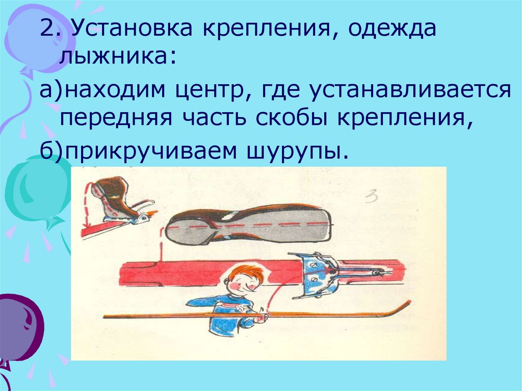 3.Установка крепления, одежда лыжника.