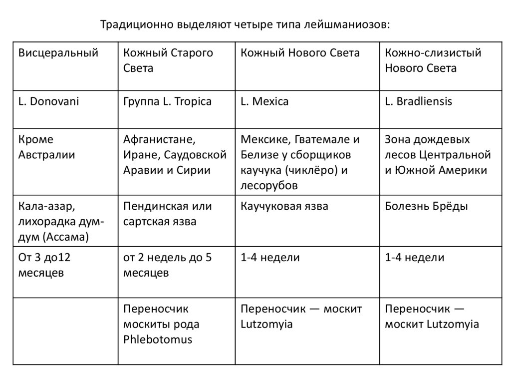 Возбудители — простейшие рода Leishmania;