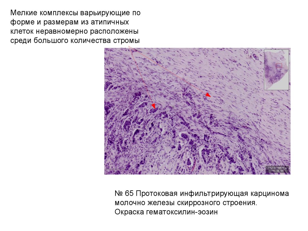 № 65 Протоковая инфильтрирующая карцинома молочнойжелезы скиррозного строения.