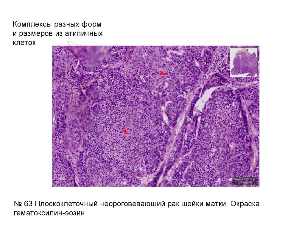№ 63 Плоскоклеточный неороговевающий ракшейки матки. Окраска гематоксилин-эозин