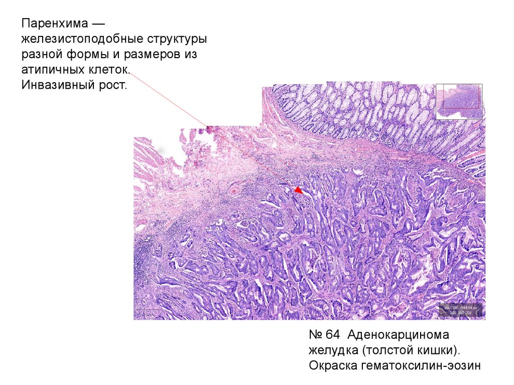 № 64 Аденокарцинома желудка.Окраска гематоксилин-эозин