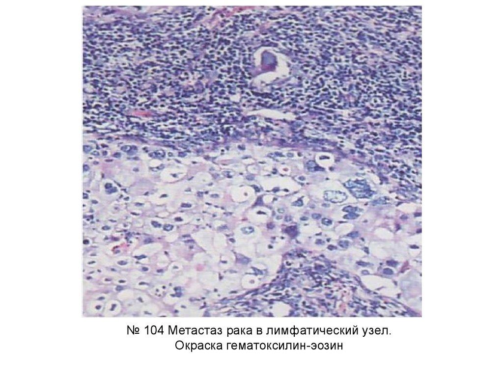 № 104 Метастаз рака в лимфатический узел.Окраска гематоксилин-эозин
