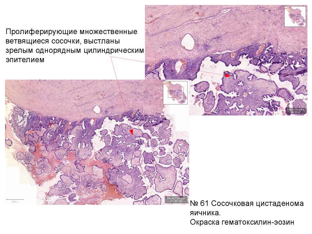 № 61 Сосочковая цистаденома яичника.Окраска гематоксилин-эозин
