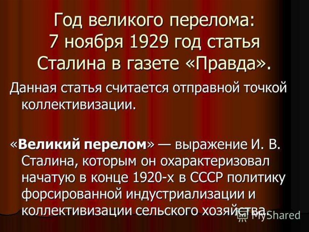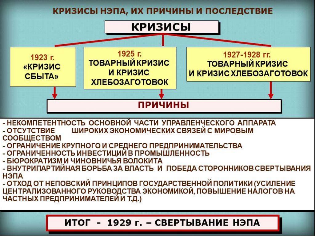 • 1929 г. – Разгром «правого уклона» (сторонников НЭПа) в лице Н.И.