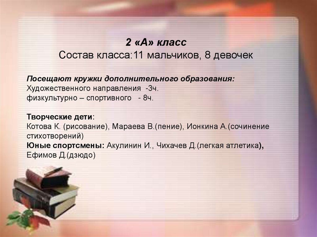 2 «А» классСостав класса:11 мальчиков, 8 девочек