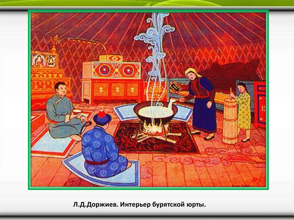 Л.Д.Доржиев. Интерьер бурятской юрты.