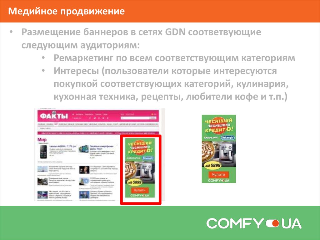 Медийное продвижение• Размещение баннеров в сетях GDN соответвующие
