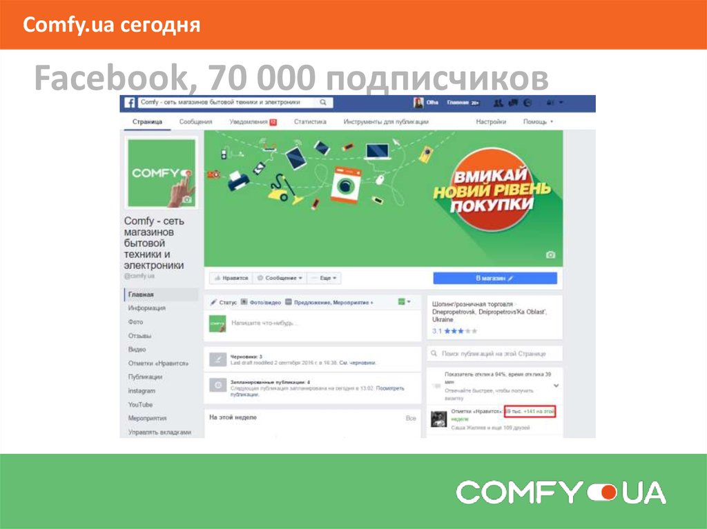 Comfy.ua сегодняFacebook, 70 000 подписчиков