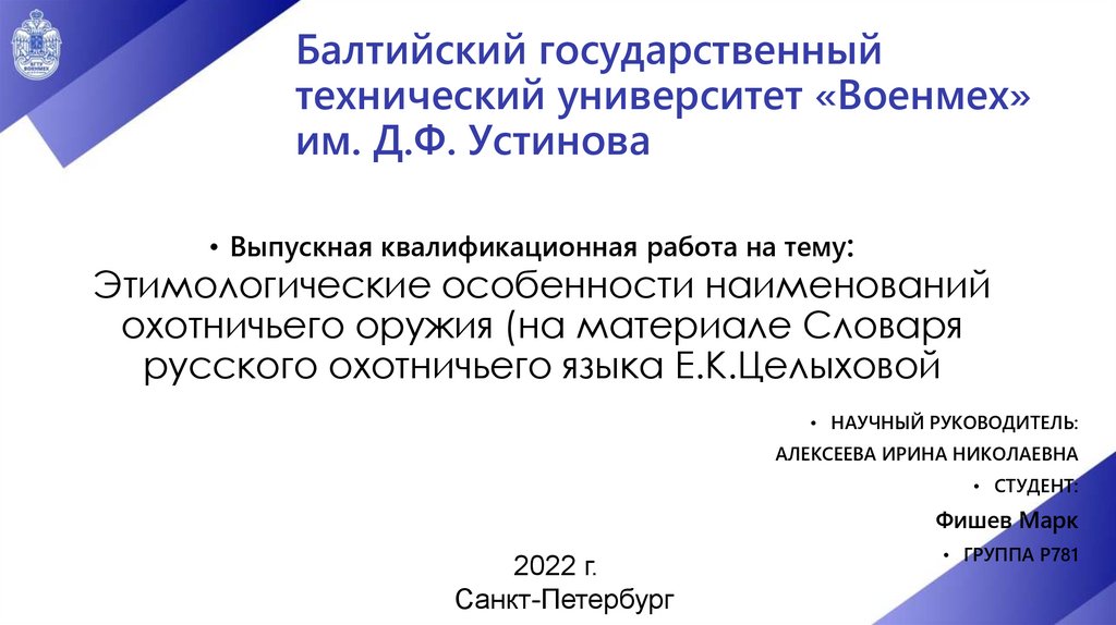 1. Балтийский государственный технический университет «Военмех» им. Д.Ф. Устинова