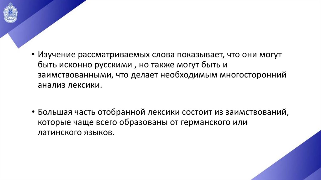 • Изучение рассматриваемых слова показывает, что они могутбыть исконно русскими , но также могут быть и