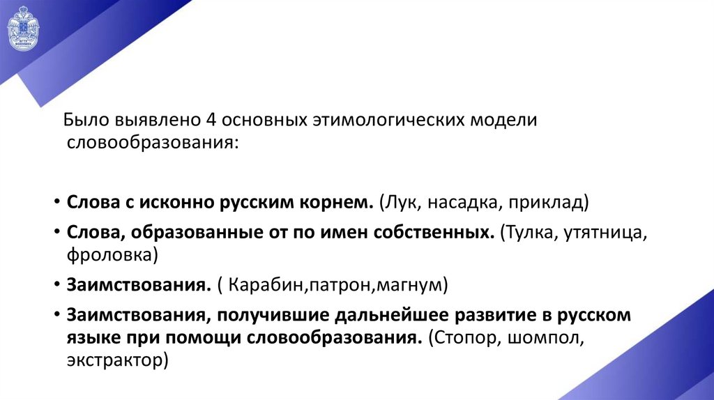 2. Тема данной квалификационной работы – Этимологические особенности наименований охотничьего оружия
