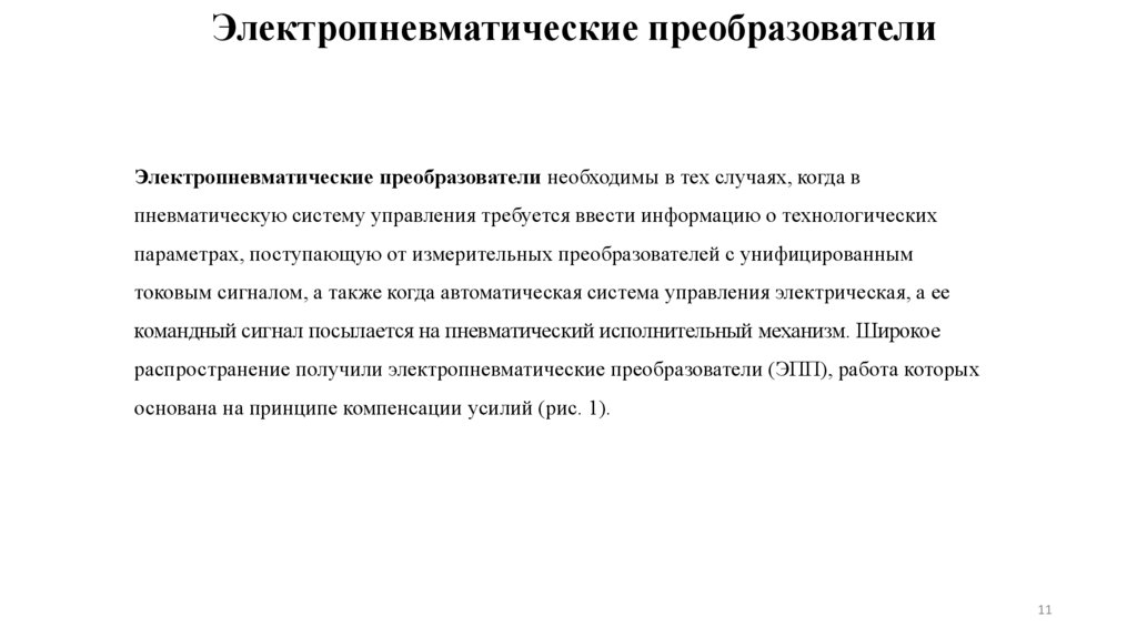 распространение получили электропневматические преобразователи (ЭПП), работа которых