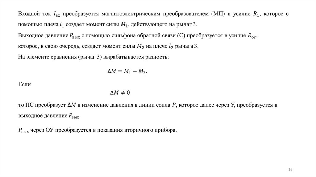 Рассмотрим структурную схему электропневматического преобразователя (рис. 2).М1