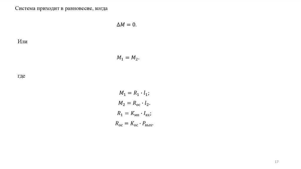 рычага 3 происходит до тех пор, пока моменты М1 и М2 не станут равны.