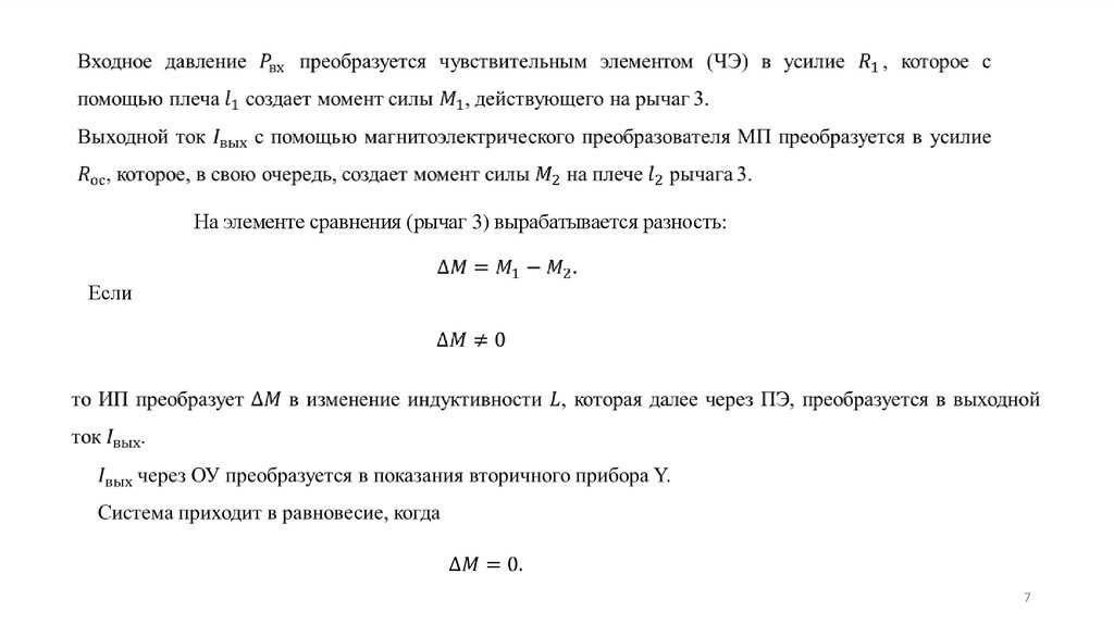 На элементе сравнения (рычаг 3) вырабатывается разность:Если