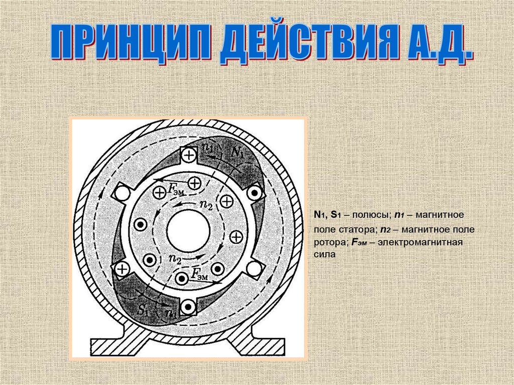 N1, S1 – полюсы; n1 – магнитноеполе статора; n2 – магнитное поле
